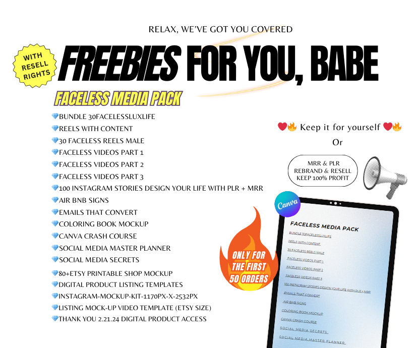 โจ Ready to slay the digital marketing game? Stop wasting time creating content from scratch and grab this MEGA bundle packed with faceless, done-for-you (DFY) resources, Perfect for passive income pros or those ready to dive into the resell world with style and ease.