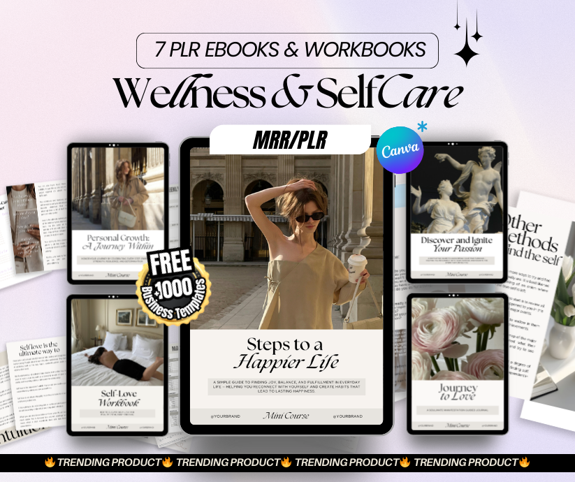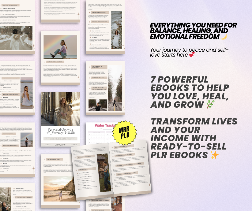 🌿 Discover the power of transformation with this 7-in-1 Wellness & Self Care eBook + Workbook Bundle 🌿 Your daily guide to personal growth, emotional healing, and self-love — while giving you full PLR & MRR rights to generate passive income effortlessly 💻