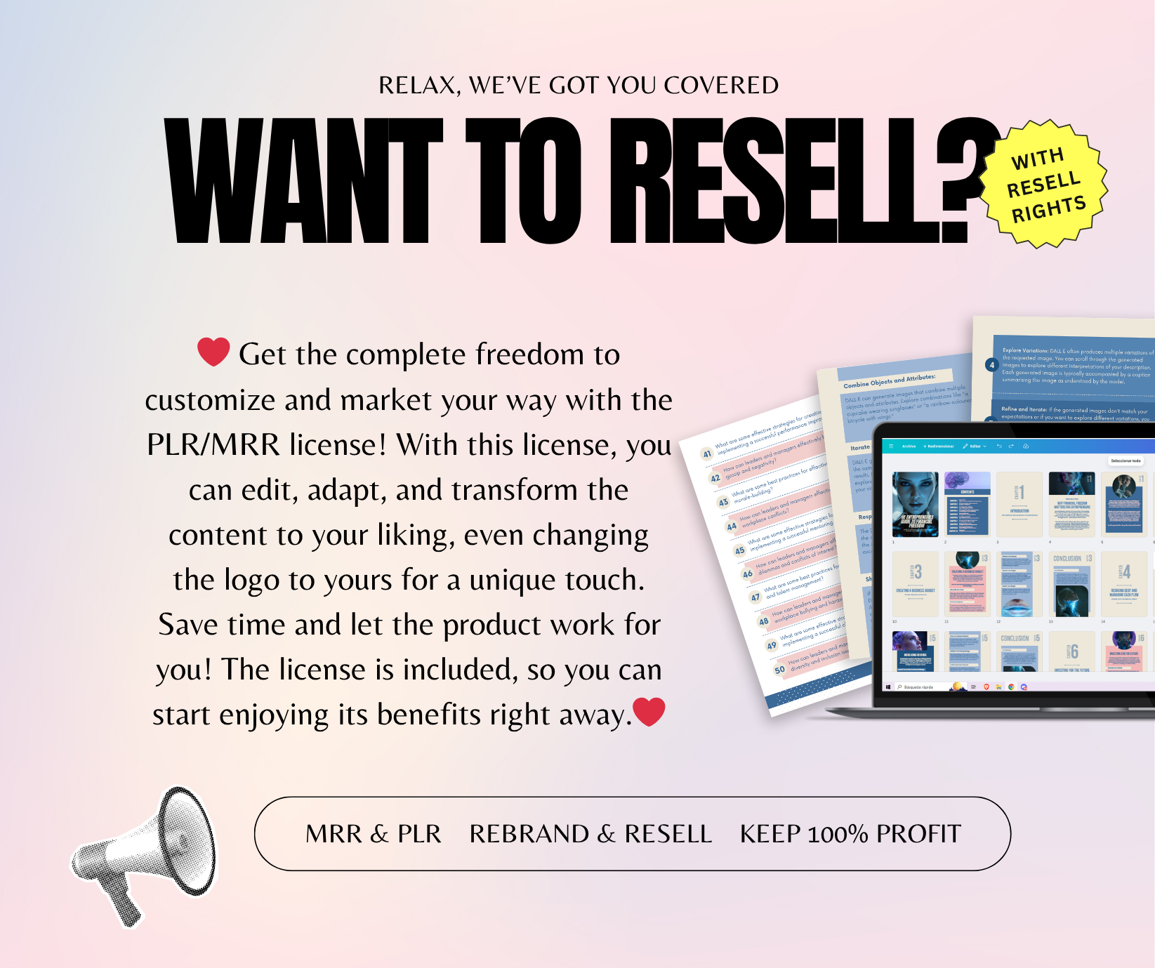 β€οΈ Get the complete freedom to customize and market your way with the PLR/MRR license! With this license, you can edit, adapt, and transform the content to your liking, even changing the logo to yours for a unique touch. Save time and let the product work for you! The license is included, so you can start enjoying its benefits right away.β€οΈ
